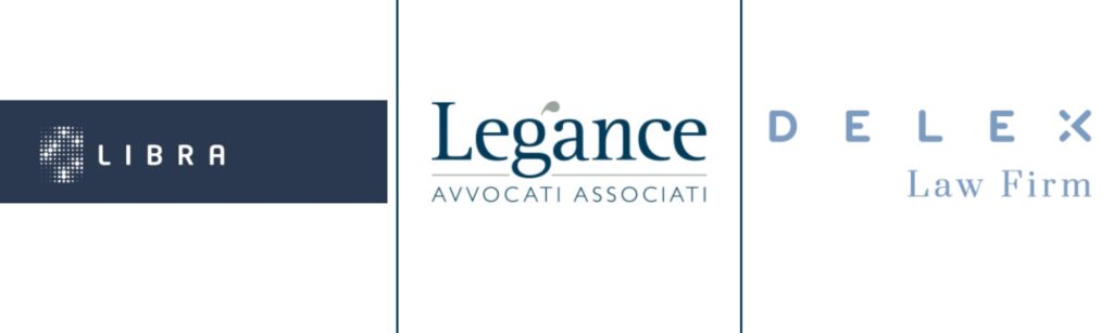 Immagine di sfondo: edificio classico con colonne, simile a una banca o istituzione governativa, composto da linee e punti neon blu e rosa su sfondo con flussi di dati e connessioni luminose.
